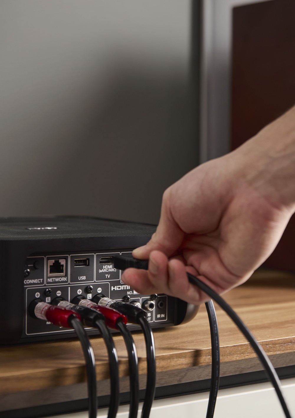 El Denon Home Amp finalmente tiene un conector HDMI [abc]eARC[/abc] CEC, una caracterÃstica perfecta para cambiar automáticamente al sonido del televisor una vez encendido, y recuperar la señal de sonido hasta [abc]Dolby Atmos[/abc] y [abc]DTS:X[/abc] proveniente por ejemplo de aplicaciones [abc]OTT[/abc] como Netflix o Disney+, para ser transmitida vÃa [ abc]downmix[/abc] en [abc]Dolby Digital Plus[/abc] 2.0. Sin olvidar una entrada [abc]óptica[/abc], una [abc]RCA[/abc] estéreo, una salida de subwoofer, un puerto [abc]USB[/abc]-A alimentado, un puerto [abc]Ethernet [/ abc] y dos pares de bloques de terminales de tornillo.