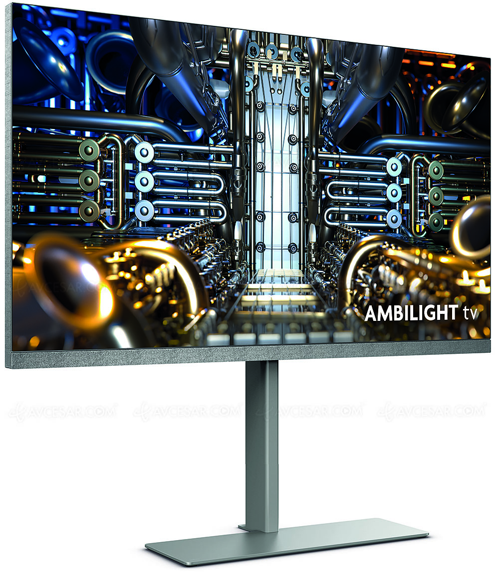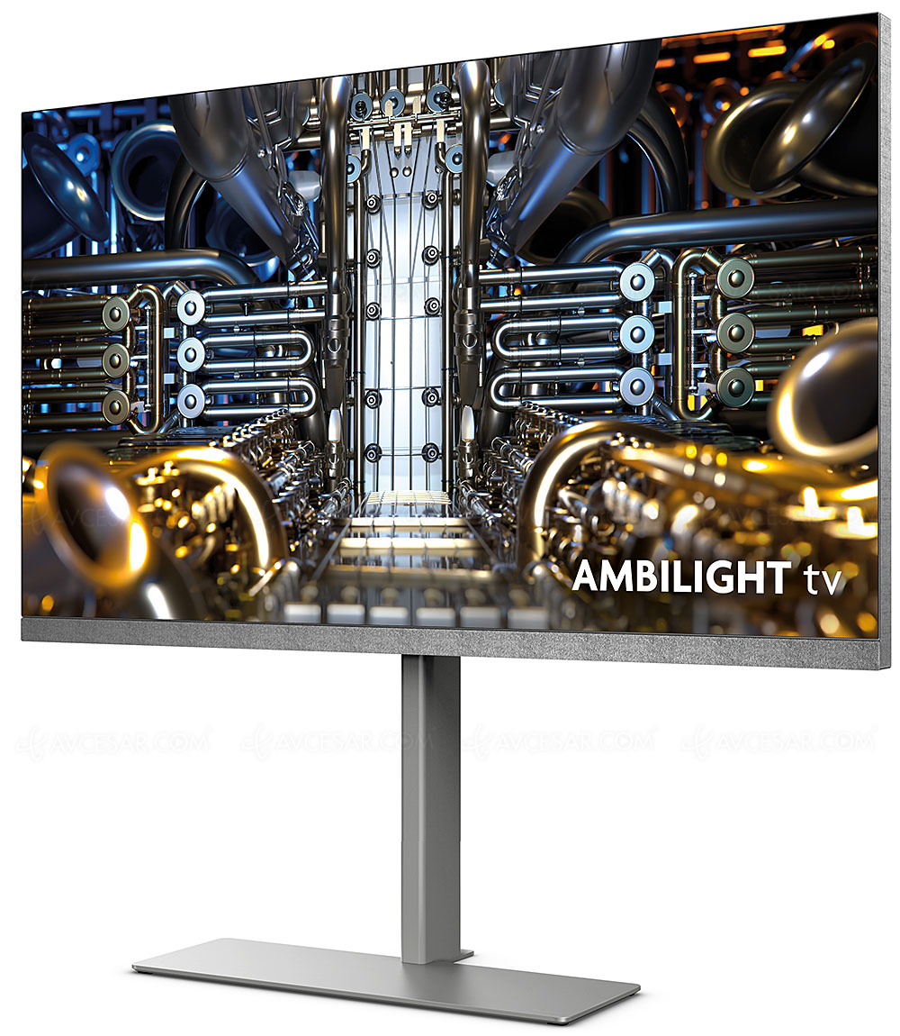 La función Ambilight de tres lados todavÃa está disponible, pero en una versión Plus en 2024. Esta, más sofisticada, utiliza lentes especiales en cada LED de color para una mayor , halo de color más dinámico e impresionantes efectos bidimensionales. Se pueden proyectar hasta cuatro halos distintos, cada uno a diferentes profundidades de la pantalla para una mayor inmersión. Por supuesto, como desde hace dos años, los diodos de color colocados en la parte trasera del televisor se gestionan de forma independiente y ya no por grupo de diodos, para una sincronización mucho más precisa con las imágenes mostradas en la pantalla.