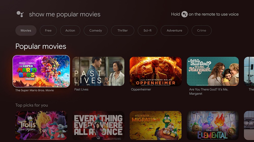 El Google TV Streamer está soportado por Google Gemini AI, lo que permite buscar contenidos mediante descripciones simples (“PelÃculas que evocan vacacionesâ€, por ejemplo), pero también obtener resúmenes, opiniones y análisis de pelÃculas o temporadas de series. La navegación se realiza mediante un mando a distancia [abc]Bluetooth[/abc] que incorpora un micrófono para solicitudes de voz a través de Google Assistant. Buen punto, un botón en la caja o una petición de voz permite, si es necesario, hacer sonar el mando a distancia que ha decidido emprender una aventura entre dos cojines del sofá.