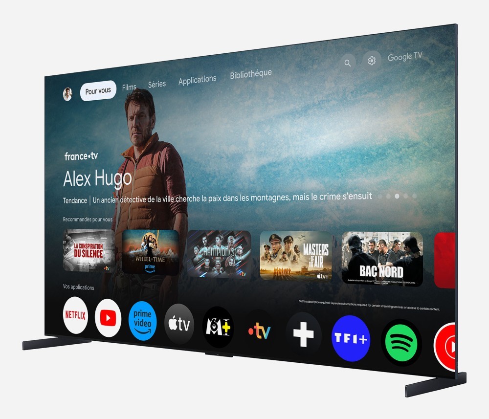 TCL X965, Smart Google TV££££ Por supuesto, al igual que sus predecesores, los televisores TCL X965 cuentan con la función Smart Google TV (Android 12). Para la conectividad se requiere la función Wi-Fi 6 además de Bluetooth 5.2. Todavía notamos las certificaciones [abc]AirPlay 2[/abc]/HomeKit y Works with Alexa (requiere un altavoz tipo Amazon Echo). Además de tener un navegador de Internet, búsqueda por voz y funciones [abc]Chromecast (integrado)[/abc], que ofrecen acceso a Google Play Store con varios miles de aplicaciones gratuitas, encontramos gestión multicuenta, PIP, función Cast eficiente en Contenidos Ultra HD, gestión multitarea para navegar entre varias aplicaciones, acceso rápido a contenidos favoritos a través de una barra de información lateral superpuesta, compatibilidad con Google Assistant, la aplicación Google Meet y la función Hands free Voice Control (control por voz del televisor) sin necesidad de un mando a distancia (miro integrado en el televisor).