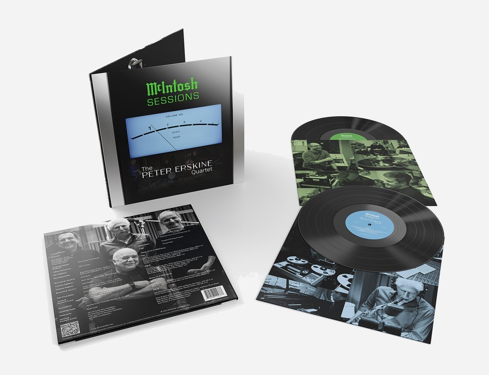 McIntosh destaca el Peter Erskine Quartet en Sessions Vol.1, un álbum de vinilo de jazz que contiene ocho piezas originales del famoso cuarteto. Un álbum grabado en el Estudio A del Henson Recording Studio en Los Ángeles y masterizado en Sterling Sound en Nashville. Es decir, el álbum incluye un LP 33T con las ocho pistas (cuatro por cara) más un EP 45T con cuatro de las ocho pistas (dos por cara), empaquetado en una funda con solapa Old Style. Vinilo premium prensado 180 gramos.