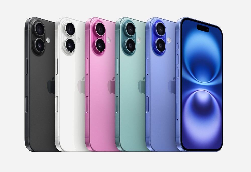 Disponible en colores ultramar, verde azulado, rosa, blanco, negro. Precios orientativos: 969 € y 1.349 € para el iPhone 16 (capacidad entre 128 GB y 512 GB) y entre 1.119 € y 1.499 € para el iPhone 16 Plus (capacidad entre 128 GB y 512 GB).