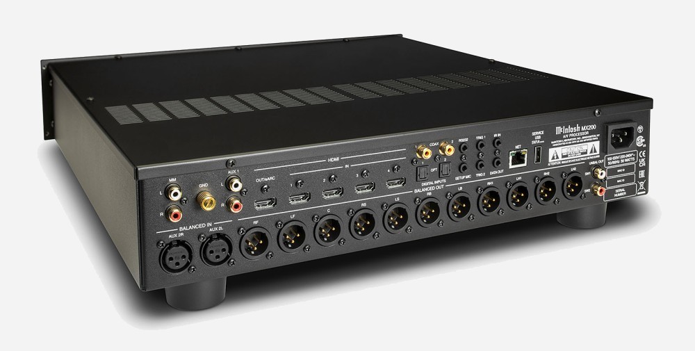 McIntosh MX200, conectividad££££ Por lo tanto, el McIntosh MX200 todavía no es pletórico en términos de conectividad. Pero lo esencial se conserva con cuatro entradas/salidas [abc]HDMI[/abc] 2.1 (función [abc]eARC[/abc] para esta última), dos entradas [abc]coaxiales[/abc], dos [abc] ] óptica[/abc], un [abc]RCA[/abc] estéreo, un Phono MM, una entrada auxiliar RCA estéreo y un XLR estéreo. La salida 11.2 (Dolby Atmos y DTS:X) tiene once [abc]XLR[/abc] (balanceadas) más dos RCA (no balanceadas) para los subwoofers. También notamos una toma [abc]RS-232[/abc], un puerto [abc]Ethernet[/abc], un puerto USB-A con alimentación dedicado al mantenimiento, una toma [abc]Trigger[/abc], un puerto de datos y un conector [abc]IR[/abc]. Para volver a los conectores HDMI, [abc]HDR10+[/abc], [abc]HDR Dolby Vision[/abc], [abc]HDCP[/abc] 2.3, Rec.2020, 4:4:4, [abc] 4K[/abc]/120 y [abc]8K[/abc]/60 están en el programa.