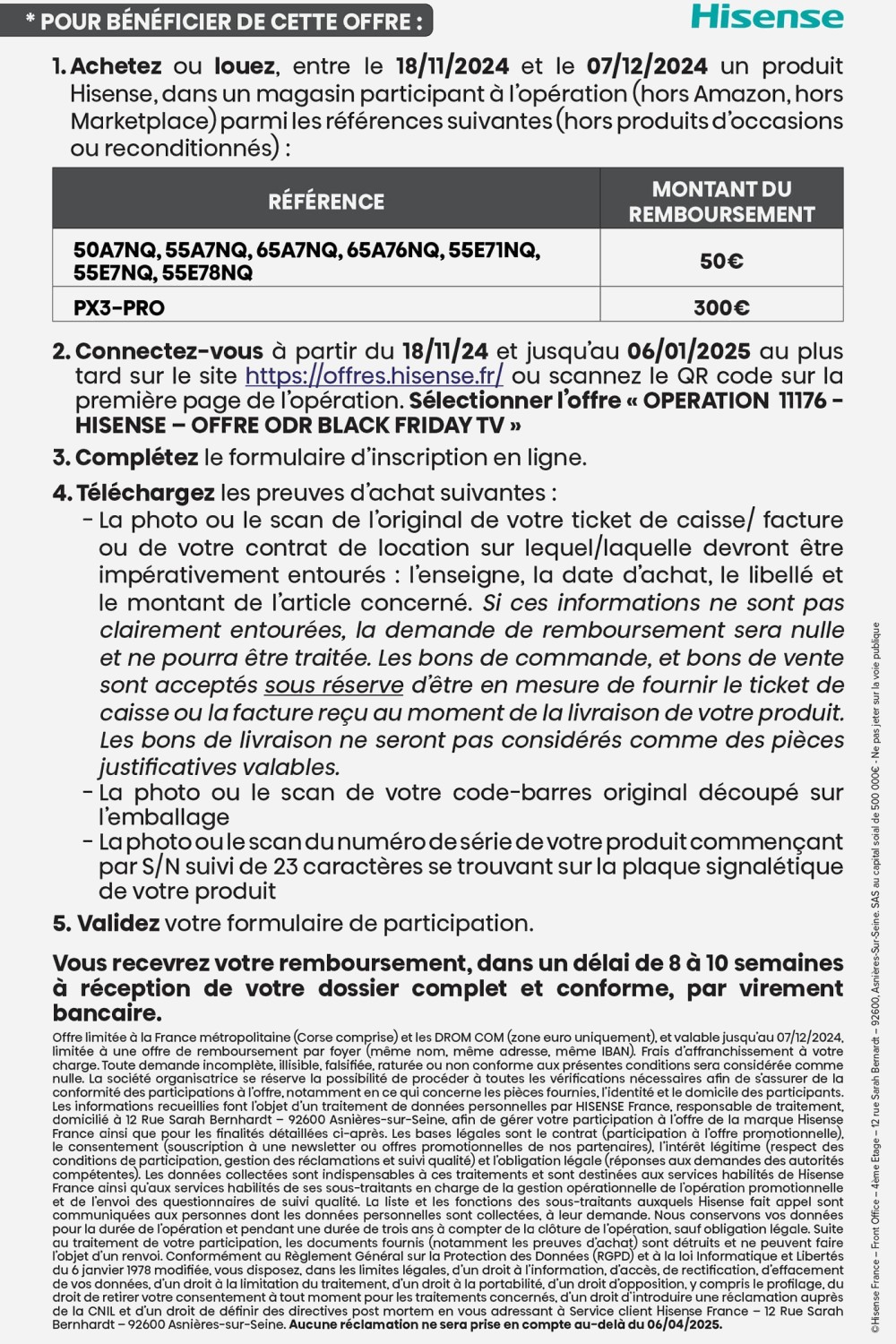 Los detalles de la oferta también están disponibles en el sitio web de la marca: https://offres.hisense.fr/