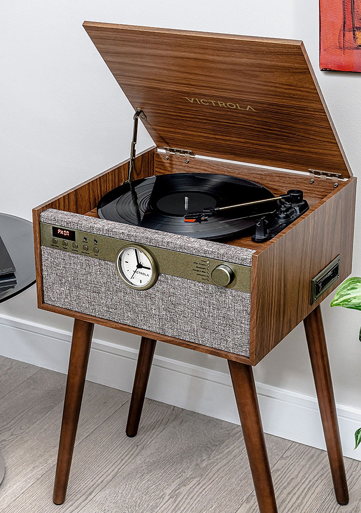 Último modelo de la gama Music Centers de madera de Victrola, este 6 en 1 incluye un tocadiscos de vinilo de tres velocidades, un reproductor de [abc]Audio CD[/abc] (ver foto al final de esta noticia), un reproductor de casetes. (sí, sí, ver foto arriba), entradas auxiliares mini-Jack de 3,5 mm y compatibilidad [abc]Bluetooth[/abc], sin olvidar la salida Bluetooth Vinylstream para escuchar tus discos vía altavoces y auriculares adecuados.