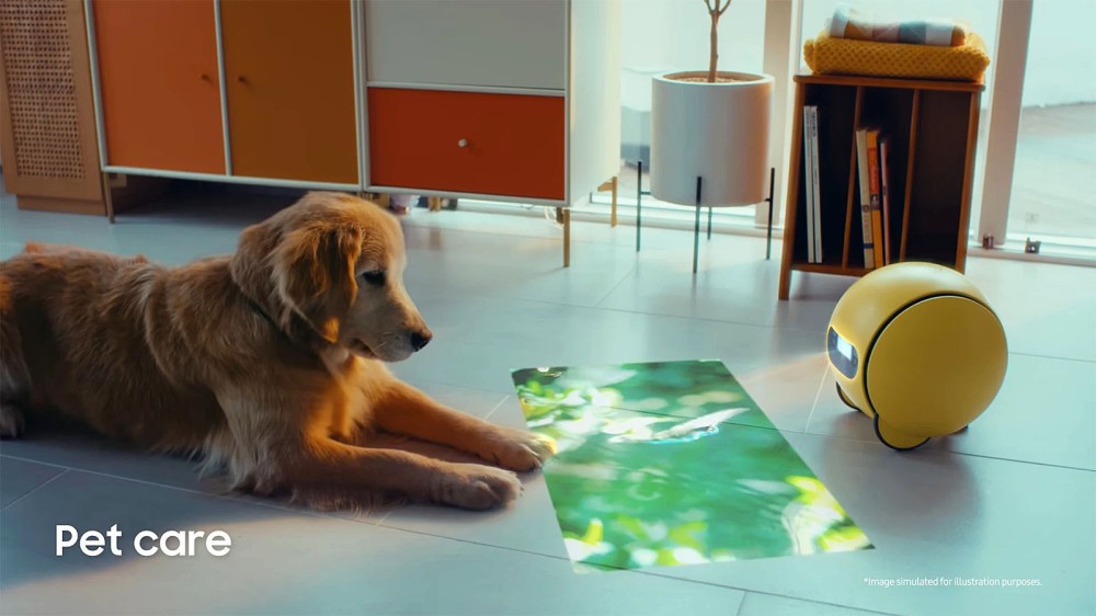 Ballie camina por la casa y te avisa en el teléfono inteligente cuando algo anda mal. También sirve como asistente domótico, capaz de conectarse a dispositivos compatibles como luces, aires acondicionados, lavadoras y otros. También se encarga de distraer al animal doméstico. Finalmente, el robot te saluda cuando llegas a casa. Demasiado bonito.