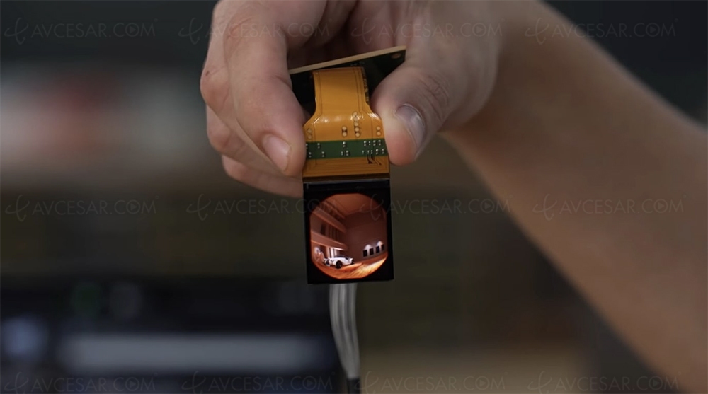 Ambas pantallas son mini especÃmenes Oled (ver foto arriba), mucho más pequeñas en tamaño que los cascos de realidad virtual actuales. Además de la calidad que ofrece su resolución, permitirán una gran reducción en el tamaño y peso del casco. También tenga en cuenta un nivel de latencia de menos de 0,01 segundos para evitar el fenómeno de mareo por movimiento (náuseas) bien conocido por los usuarios de auriculares, para una mayor fluidez y realismo.