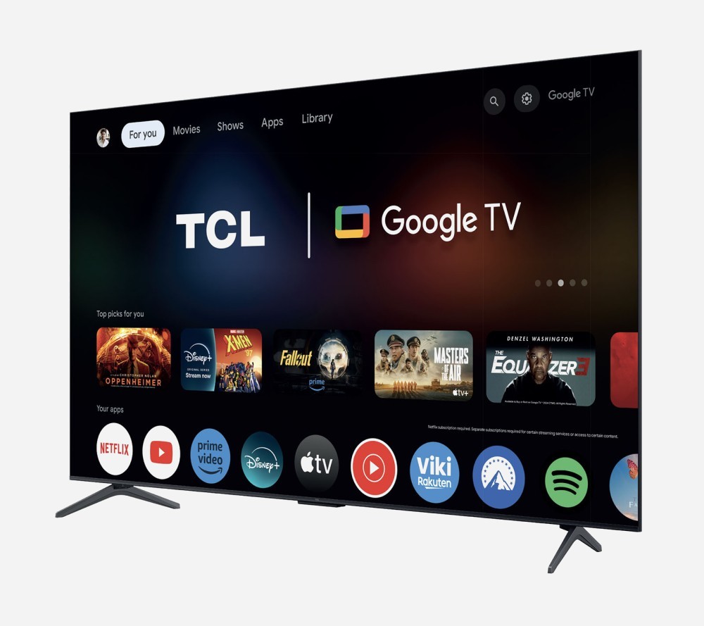 TCL C6K, diseño minimalista££££ Otro punto destacable de los televisores TCL C6K es la casi total desaparición del marco del panel LCD. Esto todavía es visible en la parte inferior del panel LCD, pero se ve muy bien en el resto del contenido (ver fotos arriba y abajo). Si a esto le añadimos una imagen que literalmente lame el borde de la pantalla (el marco negro de la matriz es ahora sólo un recuerdo, la imagen ahora ocupa el 100% del panel), el renderizado final es absolutamente espléndido. ¡Sencillo, elegante y reglamentario! Por último, los televisores TCL C6K cuentan con un soporte doble (en cada extremo de la pantalla).