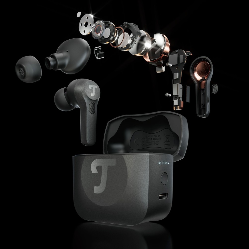 Esta tecnología ofrece reducción de ruido basada en el entorno sonoro real, captada por seis micrófonos que detectan los sonidos ambientales y generan instantáneamente un "contrasonido". El modo Transparencia permite escuchar las conversaciones con naturalidad, y los controles táctiles están integrados directamente en los auriculares. El diseño acústico de los Teufel Airy TWS Pro incluye altavoces de 10 milímetros.