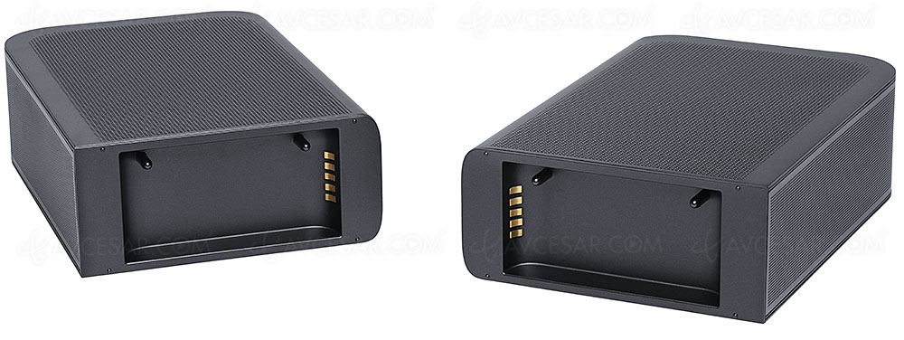 JBL Bar 1000MK2, compatible con Dolby Atmos y DTS:X££££ La JBL Bar 1000MK2 retoma el principio de los altavoces envolventes desmontables de la Bar 1000, transformando la barra de sonido en un auténtico paquete 7.1.4 con un par de altavoces autónomos. Surrounds. Estos cuentan con una batería integrada que permite unas diez horas de uso. Una vez finalizada la sesión de cine en casa, simplemente conéctelos a la barra de sonido para recargarlos.