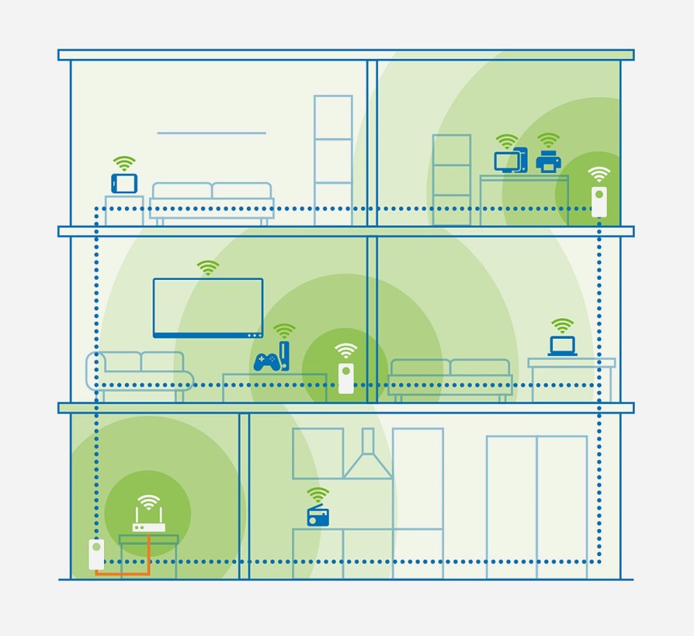 Para sótanos o lugares sin enchufes [abc]Ethernet[/abc] y/o buena cobertura [abc]Wi-Fi[/abc], [abc]Powerline[/abc] es una solución alternativa, que utiliza enchufes eléctricos para ampliar la red de Internet doméstica.