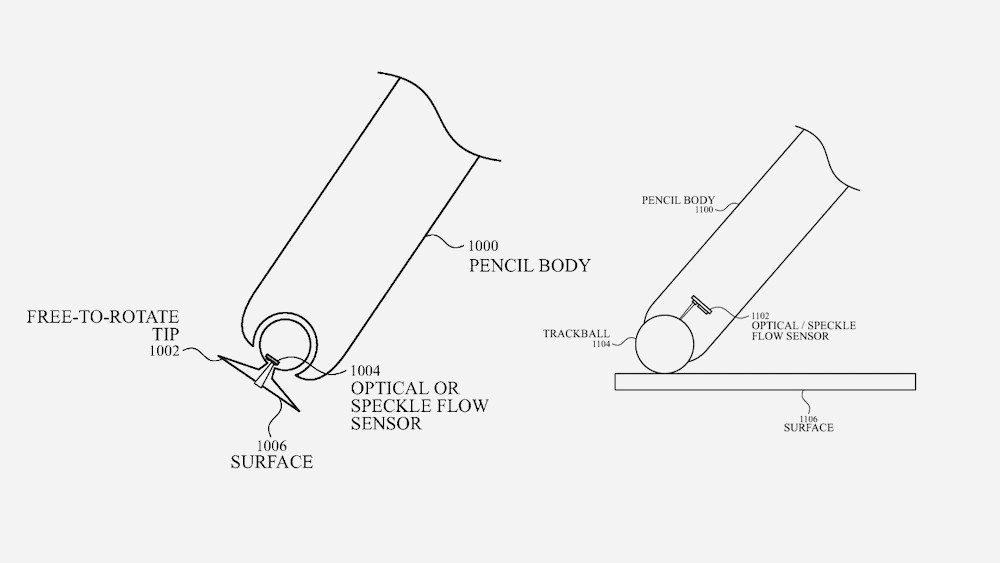 Eso es básicamente lo que Apple tiene en mente, como lo demuestra esta patente recientemente otorgada al fabricante y simplemente llamada Dispositivo de entrada con sensores ópticos. En resumen, todos los sensores están incluidos en el lápiz óptico, y ya no es necesaria la presencia de una pantalla táctil ni una superficie dedicada. Puedes apuntar el dispositivo a una mesa, dibujar sobre ella y tus movimientos se reproducen fielmente en la pantalla de una computadora o tableta, conectada inalámbricamente.