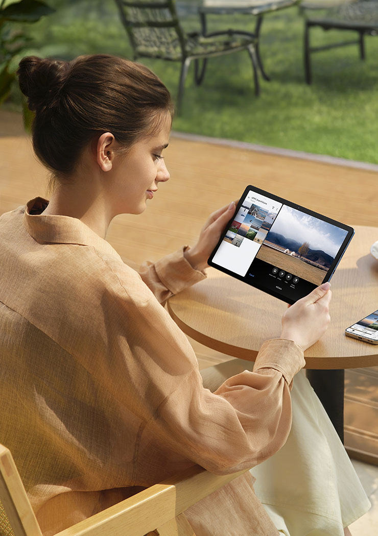 El dispositivo está equipado con funciones inteligentes como Google Gemini y el asistente para tomar notas. También cuenta con un Modo Niños Personalizado que permite a los padres controlar fácilmente el tiempo de pantalla y el acceso a las aplicaciones. También incluye el sistema O+ Connect para compartir fotos, vídeos y archivos con otros dispositivos.