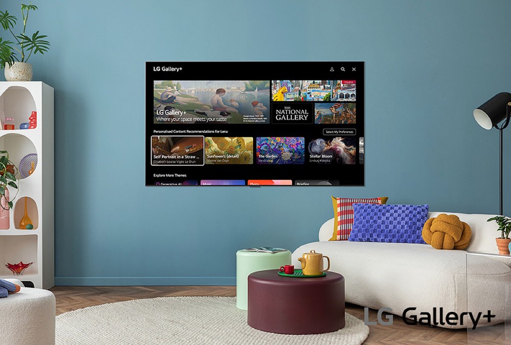 Ofreciendo más de 4000 imágenes, opciones de personalización y otras funciones inteligentes, LG Gallery+ transforma tu televisor en una pintura o póster cuando no está en uso activo. Para su selección (que se ampliará periódicamente), LG se ha asociado con instituciones culturales como la National Gallery de Londres, que ofrece obras como Campo de trigo con cipreses de Vincent Van Gogh o Un baño en Asnières de Georges Seurat.