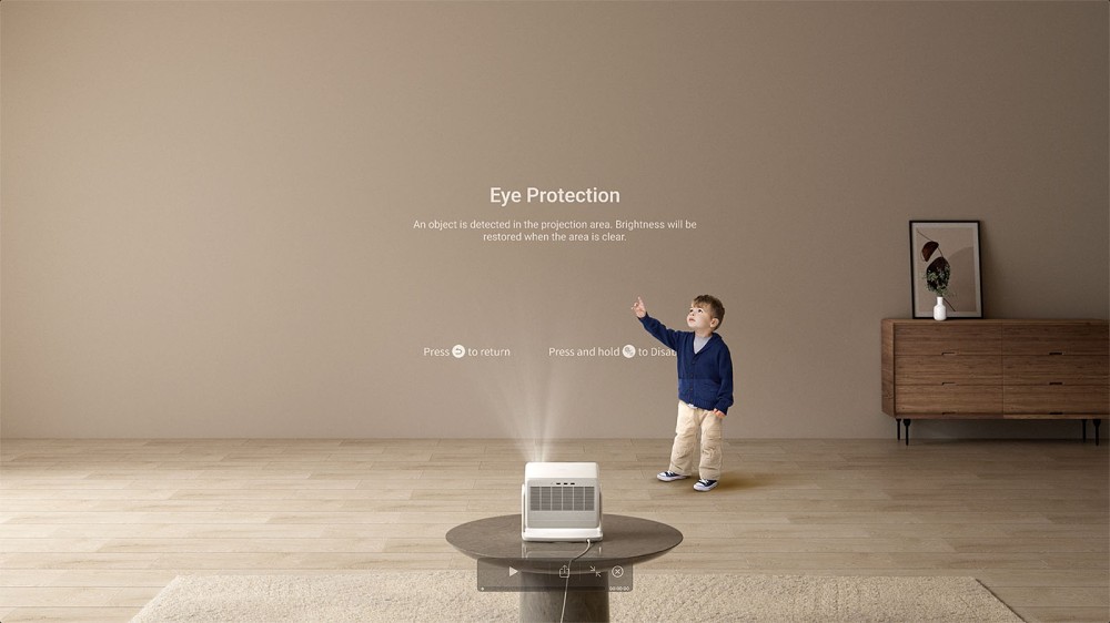 Al igual que sus predecesores, el modelo Xgimi Horizon 20 Pro incorpora una ergonomía avanzada, conocida como ISA (Adaptación Inteligente de Pantalla). Este último permite el ajuste trapezoidal y el enfoque automático, además de la alineación horizontal óptima automática y el ajuste automático del tamaño de la pantalla en caso de un obstáculo parásito en la imagen (para adaptar perfectamente la imagen al tamaño de la pantalla, por ejemplo, o para evitar una luz de pared). También vale la pena mencionar una parada automática de la proyección si una persona (normalmente un niño) pasa delante de la lente del proyector para proteger los ojos. Es decir, el soporte integrado permite un ajuste vertical de hasta 135° y una rotación horizontal de 360 grados.