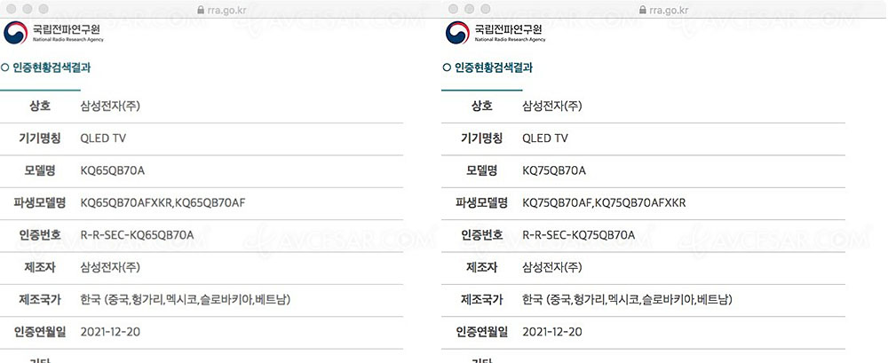 Los primeros televisores Samsung de la gama 2022 (como los televisores Oled LG 2022, consulte nuestras noticias CES 22> LG Oled 2022 4K Ultra HD TV: LG A2, LG B2, LG C2, LG G2, LG Z2, LG Art10 y LG Art90) apareció en el sitio web de la Agencia Nacional de Investigación de Radio (NRRA), la agencia coreana responsable de la certificación de productos electrónicos comercializados en el territorio de Corea del Sur.