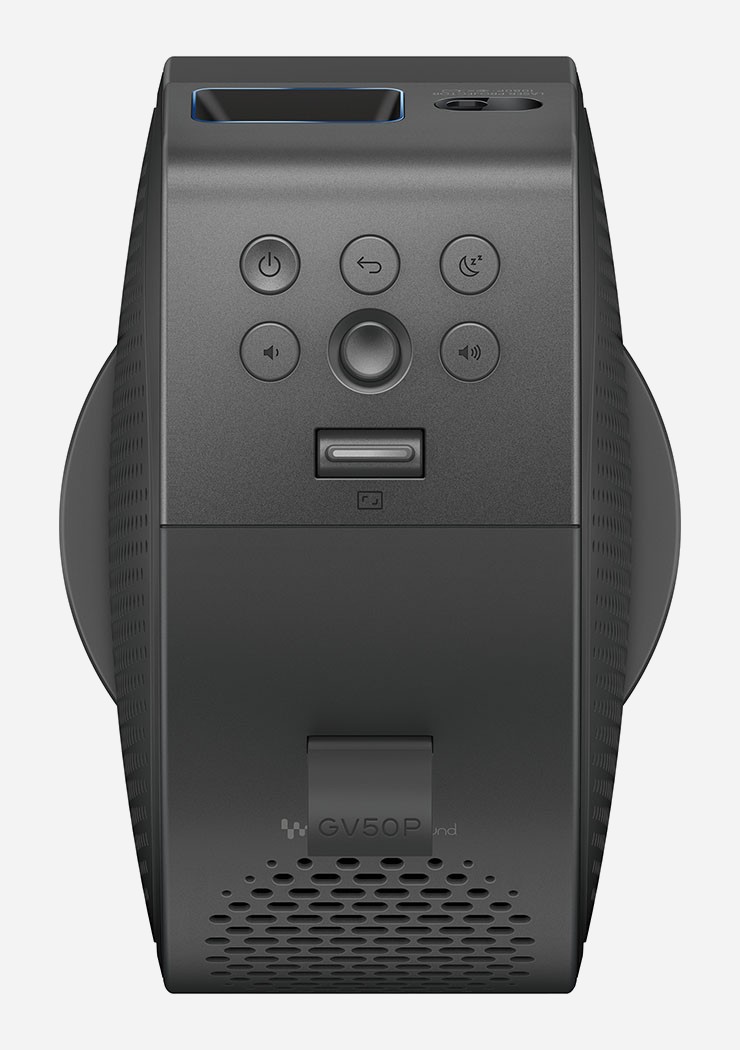 Entre sus principales características, cabe mencionar un chip [abc]DLP[/abc] de 0,23" (0,58 cm) con resolución Full HD [abc]1080P[/abc], compatibilidad con [abc]HDR 10[/abc] y una fuente de luz monoláser azul capaz de ofrecer hasta 500 lúmenes. En cuanto a la imagen, también está disponible un ángulo de proyección vertical de 135° y un ángulo horizontal de 360°. El enfoque y la corrección trapezoidal (vertical ± 20°, horizontal ± 30°) son automáticos y la relación de proyección es de 1,2. En cuanto al audio, cuenta con un modo de proyección de techo para crear un ambiente espacial similar a [abc]Dolby Atmos[/abc]. Es decir, el pie ajustable de 10° para tener una imagen perfectamente centrada en el eje de una cama para Ejemplo durante una proyección en el techo (ver fotos abajo a la izquierda y en la parte superior de esta noticia). El BenQ GV50P también puede funcionar como altavoz [abc]Bluetooth[/abc] 5.0 y el sistema [abc]2.1[/abc] integrado ofrece una potencia de 18 vatios.