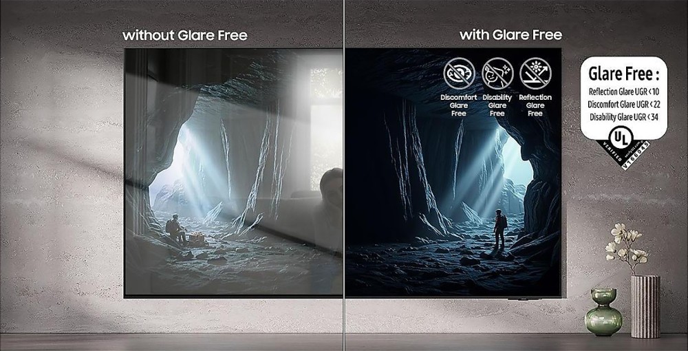 ¡Revestimiento Glare Free 2.0, igual pero mejorado! La tecnología Glare Free conquistó rápidamente a los consumidores y se consolidó como un argumento de venta eficaz, obvio para todos y fácil de demostrar en las tiendas. Sin embargo, aunque las ventajas del proceso Glare Free de primera generación (1.0), trasladado a la serie de televisores Samsung QN90F 4K Mini LED UHD de 2025, son innegables y suficientes para la gran mayoría de los espectadores, quedaba un pequeño defecto visible para los más exigentes: negros ligeramente grisáceos en condiciones de luz ambiental. Un defecto perfectamente borrado con el proceso Glare Free 2.0 (ver nuestra noticia Samsung TV Oled & Mini LED 2025, zoom sobre el revestimiento antirreflejos Glare Free 2.0, para apreciar la enorme evolución realizada por Samsung en un año) disponible en 2025 en la serie de televisores [abc]Oled[/abc] Samsung S95F más las dos series de televisores [abc]LCD[/abc] Mini [abc]LED[/abc] [abc]Ultra HD[/abc] [abc]8K[/abc] Samsung QN900F y Samsung QN990F.