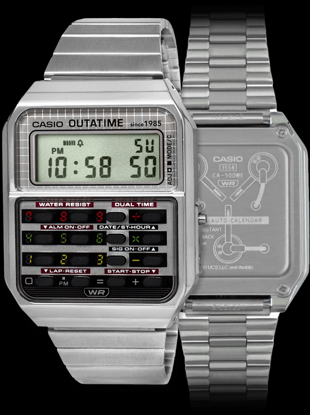 Lanzado el 21 de octubre para celebrar el 40.º aniversario de la película Regreso al Futuro, el reloj digital Casio CA-500WEBF-1A es casi idéntico al modelo lanzado en los 80.