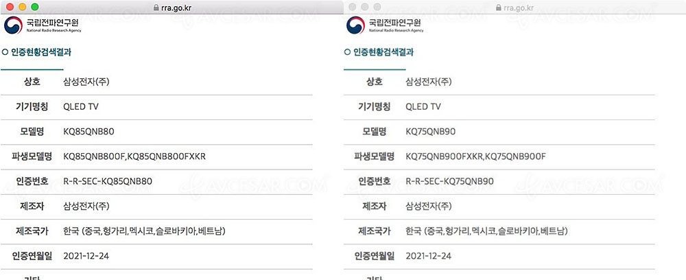 Los primeros televisores Samsung de la gama 2022 (como los televisores Oled LG 2022, consulte nuestras noticias CES 22> LG Oled 2022 4K Ultra HD TV: LG A2, LG B2, LG C2, LG G2, LG Z2, LG Art10 y LG Art90) apareció en el sitio web de la Agencia Nacional de Investigación de Radio (NRRA), la agencia coreana responsable de la certificación de productos electrónicos comercializados en el territorio de Corea del Sur.