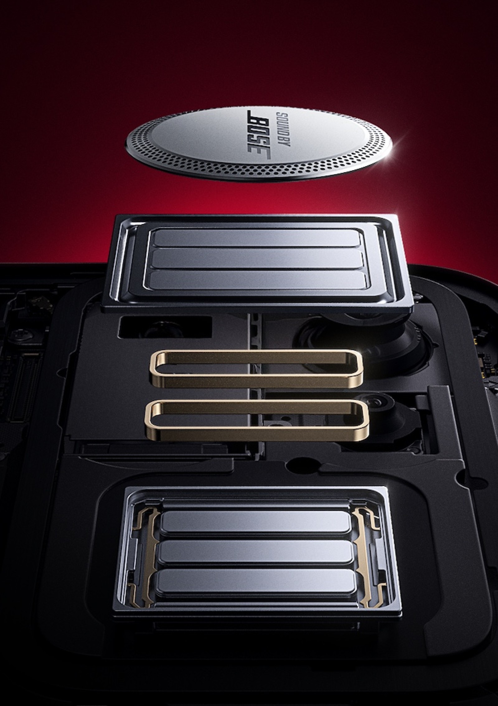 Xiaomi Redmi K90 Pro Max, sistema de sonido 2.1. El dispositivo incorpora un sistema 2.1 optimizado por Bose, compuesto por dos altavoces "superlineales" y un subwoofer "extragrande". Los componentes, relativamente grandes para un smartphone, que hacen posible esta proeza, se encuentran en el módulo de la cámara, una señal de que para Xiaomi el sonido es ahora tan importante como la captura de imágenes. Queda por ver si esta nueva característica conquistará al público y si los competidores se inspirarán en ella para sus futuros modelos.