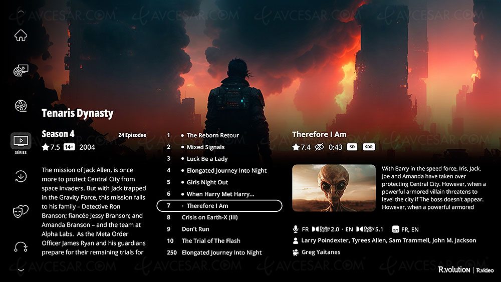 ¿R_video es mejor que el benchmark Zappiti? La aplicación R_video también está disponible (a un precio de 5,99 € al mes o 50 € al año, gratuita para los propietarios de un reproductor R_volution): descarga de subtítulos, todo tipo de iconos para definir y etiquetar contenido, carteles de películas firmados por R_video (la base de datos de R_volution contiene aproximadamente 18 000 carteles al momento de escribir este artículo), control parental, personalización de la interfaz de usuario, reproducción de la banda sonora de una película mientras se navega, gestión de señales de 24 Hz y 23,976 Hz…
