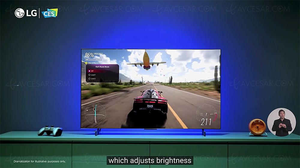 Otra evolución, todos los televisores Oled 2022 se beneficiarán de un nuevo modo Dark Room para reducir la fatiga ocular si juegas en un entorno con poca luz. LG afirma que este último reducirá el brillo del televisor mientras conserva el contraste. Finalmente, todavía se requiere soporte (HDR Gaming Interest Group).