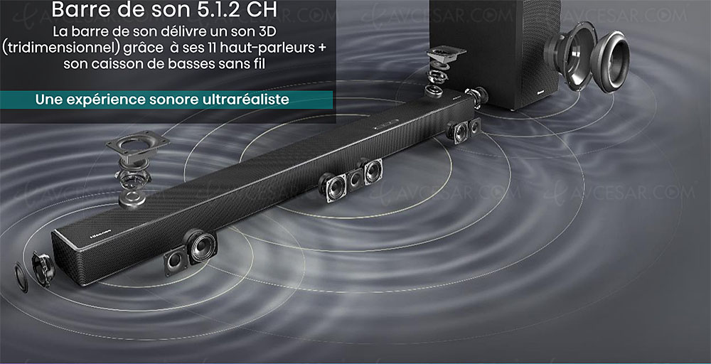 Al Hisense HS512, el Hisense U5120GW añade compatibilidad con Wi-Fi, Chromecast (integrado) y AirPlay, certificación Hi-Res Audio y gestión de los principales asistentes de voz. La potencia entregada muestra 480 vatios. Es decir, existe una versión U5120GW+, modelo 7.1.2 equipada con un par de wireless surround para una potencia total de 570 W, pero no se sabe si se distribuirá en Francia.