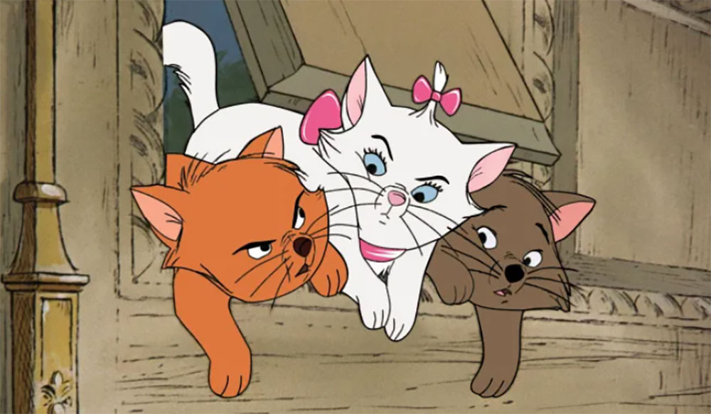 La versión original de 1970, dirigida por Wolfgang Reitherman, sigue el viaje de una familia de gatos que vive en ParÃs con Madame de Bonnefamille, una excéntrica millonaria. Un dÃa, esta última invita a su notario a legar toda su fortuna a sus compañeros de cuatro patas. Sin embargo, una cláusula en el testamento estipula que cuando los gatos mueran, su propiedad pasará a su mayordomo, Edgar. Este último hará todo lo posible para eliminar a los herederos peludos.