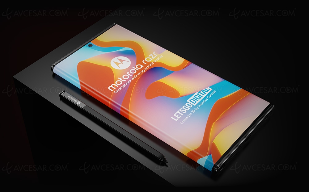 Detectada e ilustrada por Let's Go Digital, esta patente presentada por Motorola en los EE. UU. en junio de 2020 y publicada recientemente describe un teléfono inteligente en el que solo los bordes superior e inferior carecen de pantalla, solo para dejar espacio para elementos esenciales como un puerto USB-C, puerto Sim, micrófono, parlantes y botón de encendido. El resto del dispositivo, de atrás hacia adelante, está cubierto por una pantalla flexible ininterrumpida. Muy agradable a la vista, incluso si uno puede expresar dudas sobre la solidez de dicho concepto.