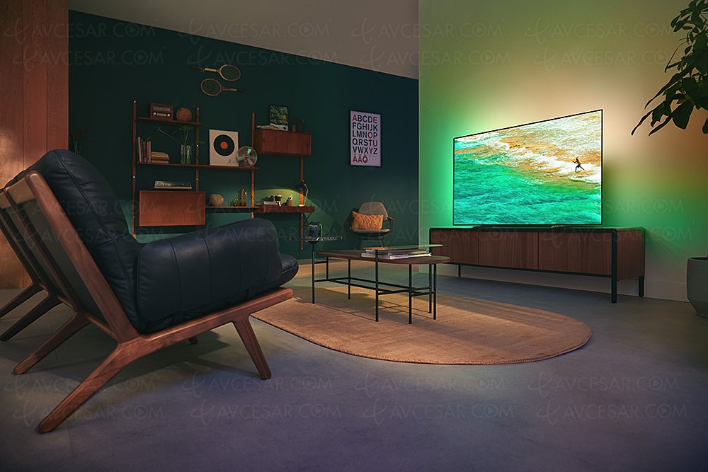 En resumen, las principales diferencias con los televisores OLED807 radican en la presencia de un panel OLED "clásico" y no OLED EX, un sistema Ambilight de 3 lados y no Ambilight de 4 lados, y un soporte doble y no un pie central.