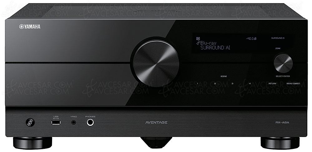 Si no tiene contenido mezclado en Auro 3D, sin duda todavía estará interesado en la función Auro-Matic Upmix, que le permite experimentar el proceso Auro 3D con una señal mono, estéreo o envolvente. Este último es bastante eficiente para agregar información de sonido de altura. Tenga en cuenta que el canal de altura central, la voz de Dios, no está gestionado por Yamaha RX-A6A o Yamaha RX-A8A. No obstante, la función Auro-Matic ofrece la posibilidad de procesamiento Auro 9.1 y Auro 11.1, respectivamente, en el RX-A6A (9 canales integrados) y el RX-A8A (11 canales integrados). Es decir, al combinar el RX-A6A con un amplificador estéreo para un total de 11 canales (9 + 2), también es posible aprovechar el procesamiento Auro 11.1.